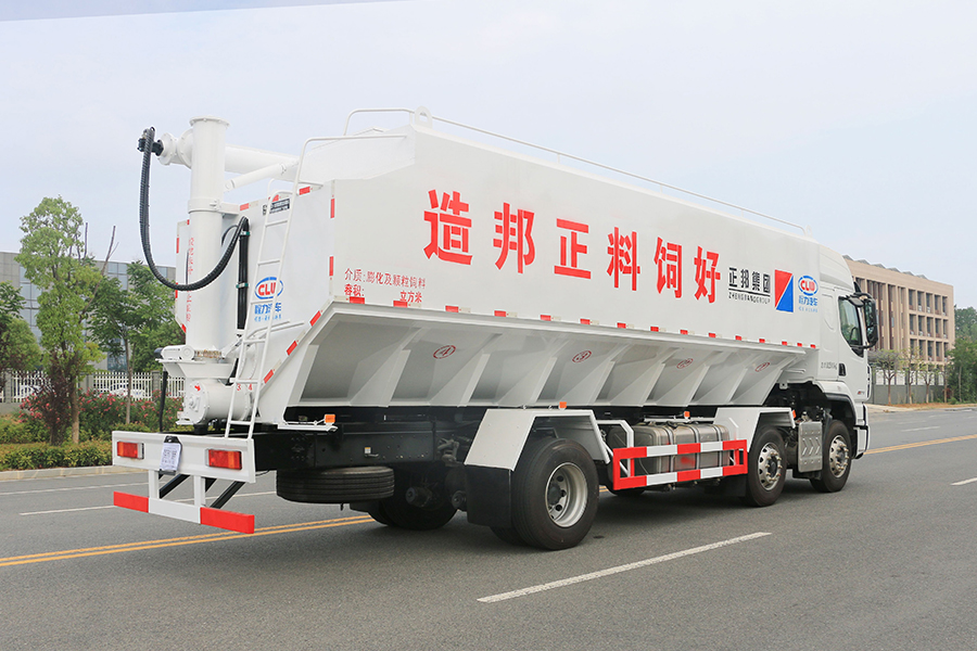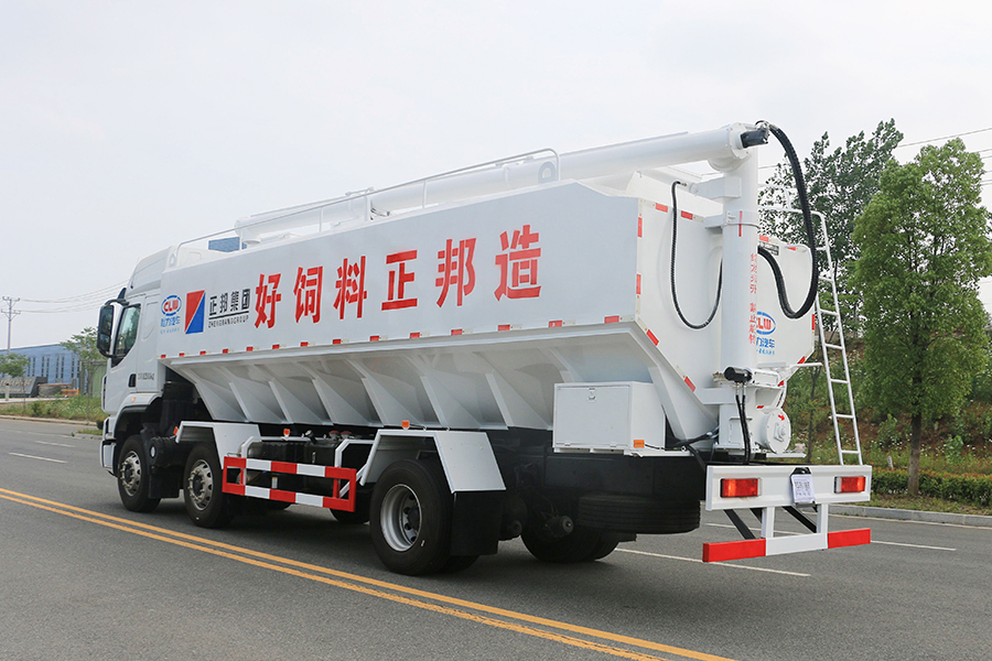 散裝飼料車全稱為散裝飼料運輸車。主要用于從飼料廠向畜牧場養(yǎng)禽場及飼料加工用戶或運輸散裝飼料成品飼料生產(chǎn)原糧,同時它也可用來運輸某些無腐蝕性粉粒狀原料,如制藥廠粉料和糧庫周轉(zhuǎn)。