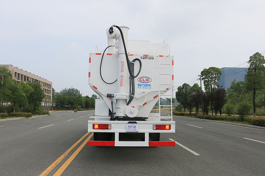散裝飼料車的飼料罐架設(shè)在卡車的底盤上,罐頂開有進(jìn)料口.頂部的一根螺旋輸送卸料管(俗稱卸料絞龍)則可自由回轉(zhuǎn)和抬升,抬升的仰角可達(dá)60度。運輸時,頂部的螺旋管平臥在罐頂;卸料時則抬起,使管端的出料口與畜禽飼養(yǎng)場貯料罐頂部的進(jìn)料門相接,駕駛室內(nèi)裝有操縱裝置(操縱裝置也可裝置在罐體尾部),卸料時通過車底的動力輸出軸和減速器來驅(qū)動螺旋,以完成卸料。目前國內(nèi)主要推出3T、5T、8T、11T、15T和22T等多個噸位車型。