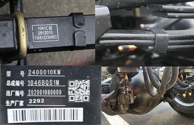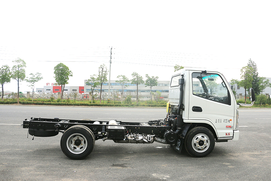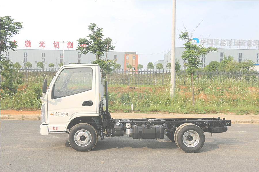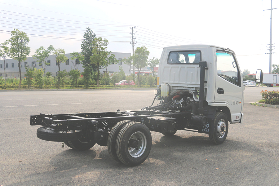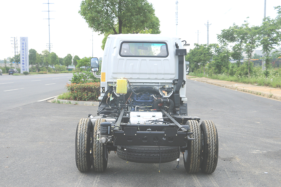 直通大梁厚度180mm,截面寬度800mm,斷面整潔布局合理,易改裝。 全鋁合金燃油油箱和儲(chǔ)氣罐,輕量化設(shè)計(jì),鋼板彈簧10mm厚,片數(shù)5+4,后橋加重型號(hào)1046BQS(3.5噸),高質(zhì)量工藝,承重性好。
