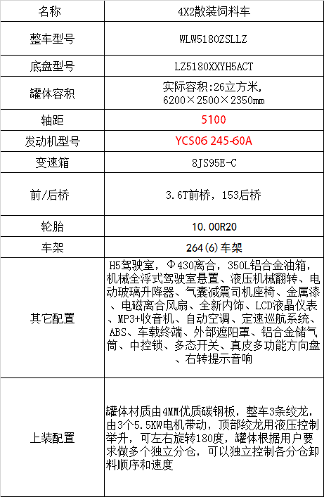 發(fā)動機YCS06245-60A,3.6T前橋,153后橋/4.1,8JS95E-C,Ф430離合,板簧11/12+9,264(6)車架,350L鋁合金油箱,275/80R22.5,機械全浮式駕駛室懸置、液壓機械翻轉、夾層玻璃、電動玻璃升降器、氣囊減震司機座椅、自動空調、定速巡航系統(tǒng)、ABS、車載終端、外部遮陽罩、中控鎖、多態(tài)開關、真皮多功能方向盤、右轉提示音響