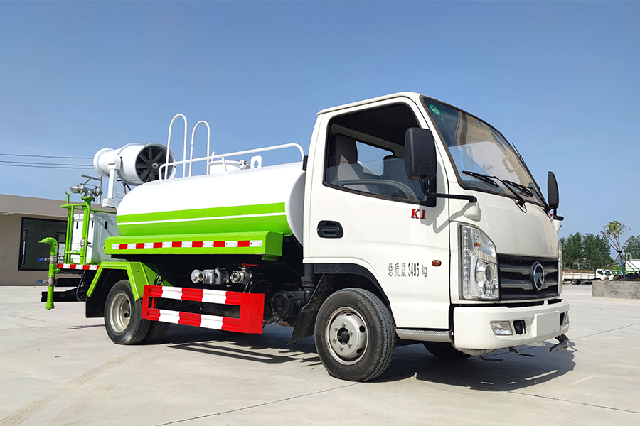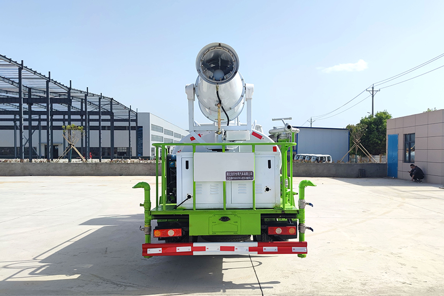 罐體采用標準Q235碳鋼制作,罐體自動焊,裝水3噸,配大功率專用灑水泵,可自吸自排,前沖后灑,側噴,主管道加粗,大通徑球閥,直通球閥式消防接口,帶后工作平臺,帶高炮。尾部大平臺,加裝30米噴霧機。環(huán)保、免征齊全。