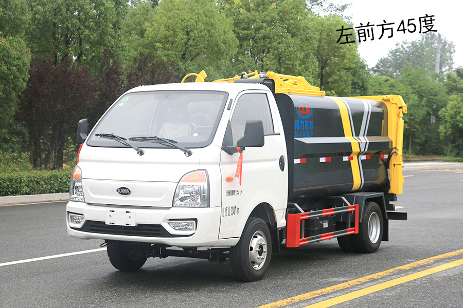 該車由密封式垃圾廂、液壓系統(tǒng)、操作系統(tǒng)組成,能配幾十個垃圾桶,實現一車與多個垃圾桶聯合作業(yè),廂體上的液壓升降裝置可將垃圾桶吊上、放下,上下升降,上下一次工作循環(huán)時間為50S,密封式廂體環(huán)保衛(wèi)生,可避免二次污染。