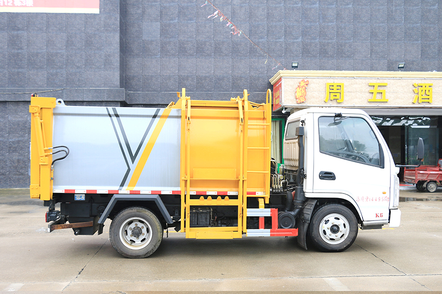 其自裝式的掛桶裝置可直接將路邊的垃圾桶掛在上面用提升機直接到在垃圾箱體里面省去了裝垃圾的麻煩。