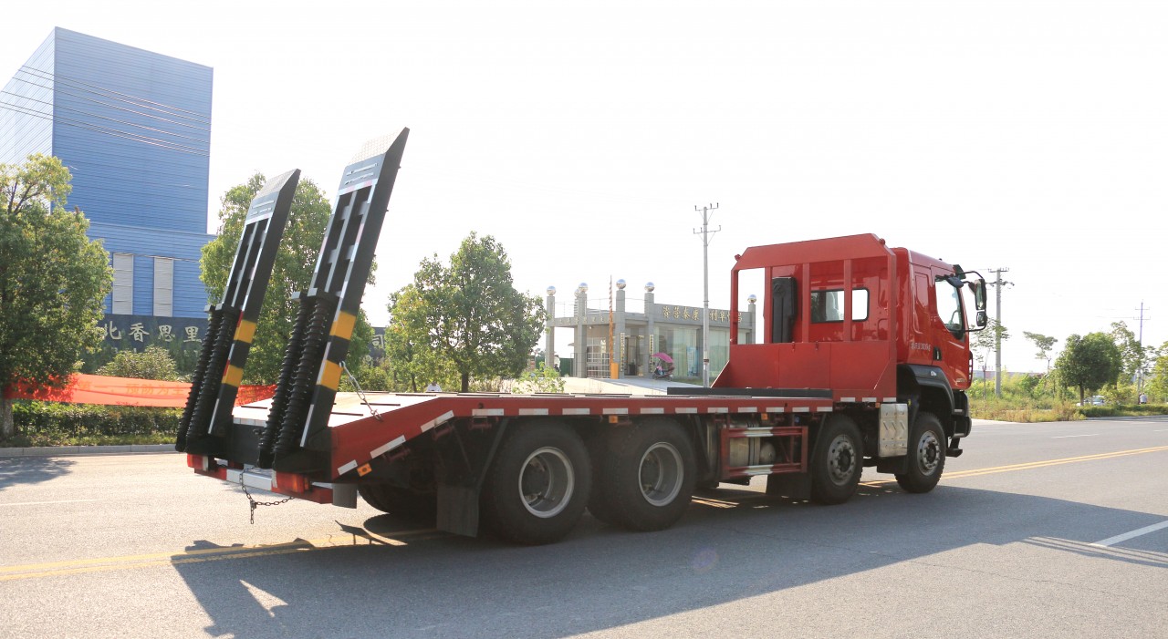 平板運輸車又名為工程機(jī)械運輸車、平板車、低平板運輸車,主要用于運輸一些像挖掘機(jī),裝載機(jī),收割機(jī)一樣的不可拆卸物體。平板運輸車是生活中常見的大型載重貨車,這種車一般被廣泛用于工廠,工地等大型生產(chǎn)或工程所在地,平板運輸車的承重能力強(qiáng)的特點使其在經(jīng)濟(jì)發(fā)展過程中起了重要作用。