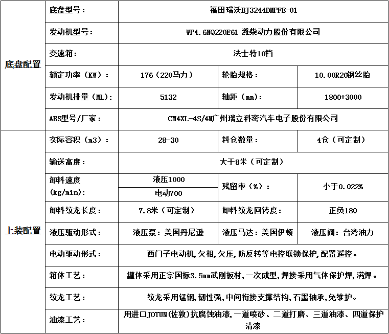 ①底盤:福田瑞沃三軸散裝飼料車的發(fā)動機是大馬力發(fā)動機