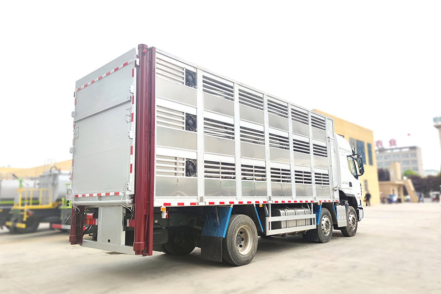 全鋁車身,三層,混合隔倉,可開合側(cè)窗,高轉(zhuǎn)速防水通風(fēng)排氣扇,機(jī)組,噴淋,監(jiān)控,垂直升降尾板,空氣過濾,裝豬數(shù)量達(dá)到850頭/7公斤