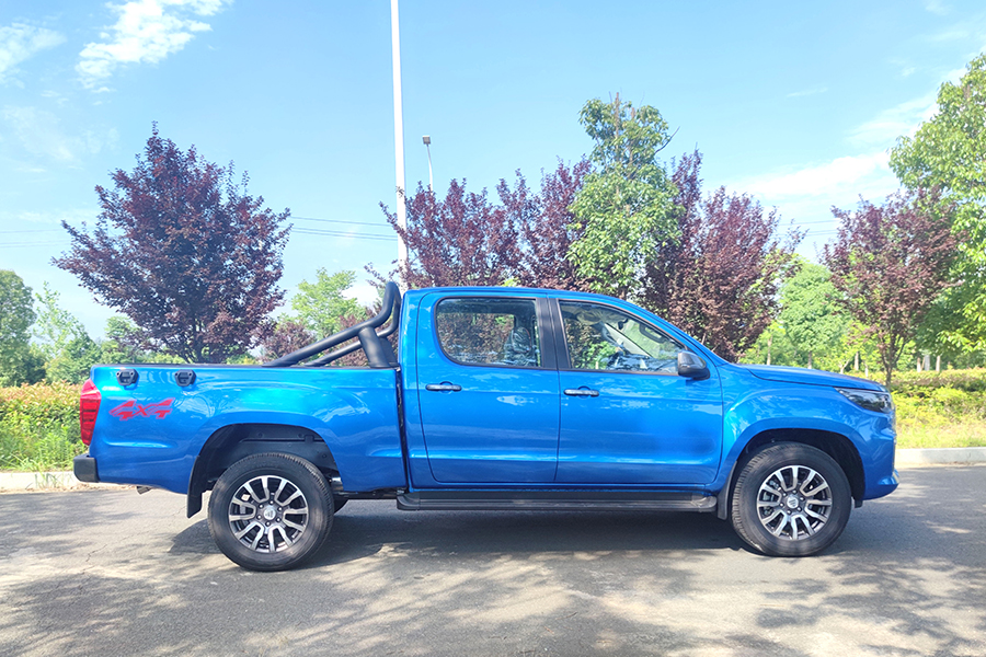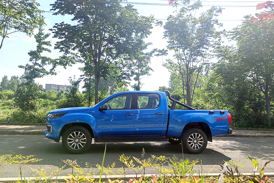 福田高端皮卡馭途9,(樂享型),歐康2.0T柴油發(fā)動機,120KW,最大扭矩390,6擋手動變速箱,3400軸距,貨箱尺寸1805*1580*440。整車型號7Y3MAV-6L,其它配置熏黑鹵素大燈、265/60R18輪胎、鋁合金輪輞、仿皮座椅、ABS+EBD、前盤后鼓、前排普通三點式安全帶、后排中間兩點式兩邊三點式安全帶、LED日間行車燈、前霧燈、大燈延時關(guān)閉、側(cè)踏板、護欄、外繩鉤、貨箱寶、內(nèi)后視鏡手動防眩目、A柱扶手、點陣屏儀表、仿皮多功能方向盤、主駕座椅手動6向調(diào)節(jié)、副駕座椅手動4向調(diào)節(jié)、雙氣囊、剎車輔助、倒車?yán)走_、發(fā)動機防盜、T-BOX(2G)、定速巡航、8寸MP5、倒車影像、藍牙電話、電動空調(diào)、一鍵啟動、機艙蓋氣動撐桿、4揚聲器、后保險杠。