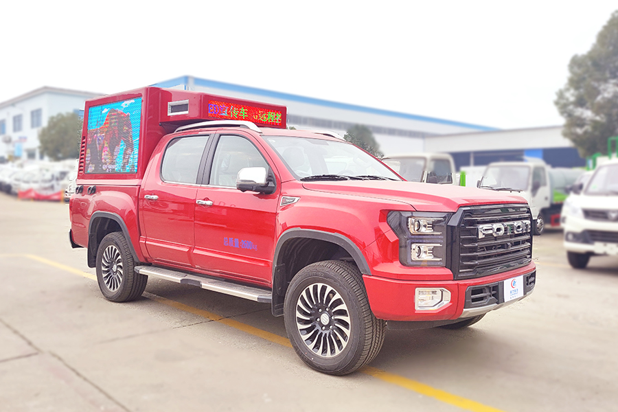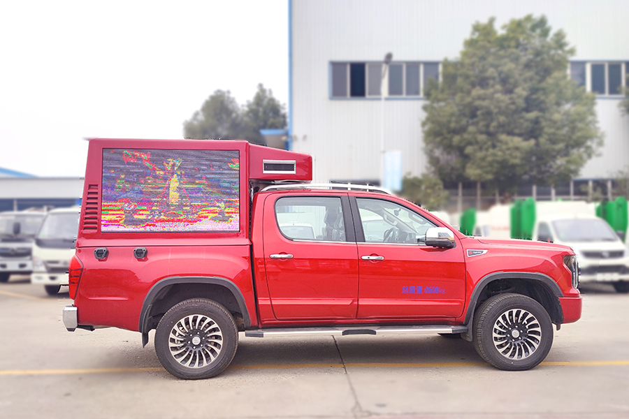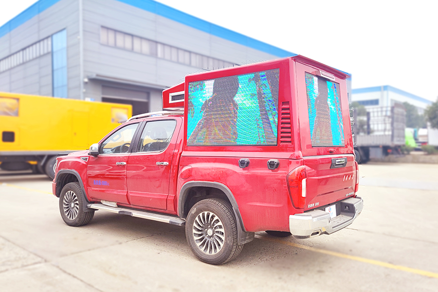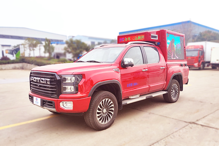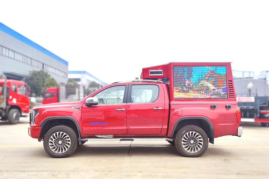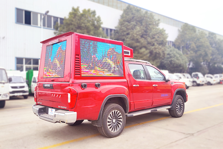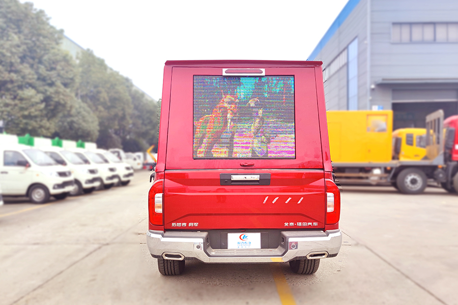 整車型號(hào)RLQ5037XXCB6,尺寸5340x1960x2360mm,全車4個(gè)面裝戶外P4全彩屏,左右兩側(cè)屏幕1280x800,尾屏960x800,前條屏960x320,外置式防水音柱,4G手機(jī)遠(yuǎn)程遙控播放音頻,鋰電池供電,可實(shí)現(xiàn)連續(xù)工作10小時(shí)??墒褂猛饨?20V市電供電/充電,箱體內(nèi)自動(dòng)溫控調(diào)節(jié)。
