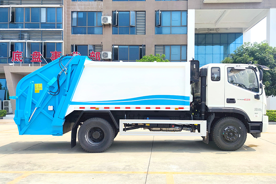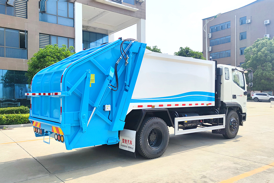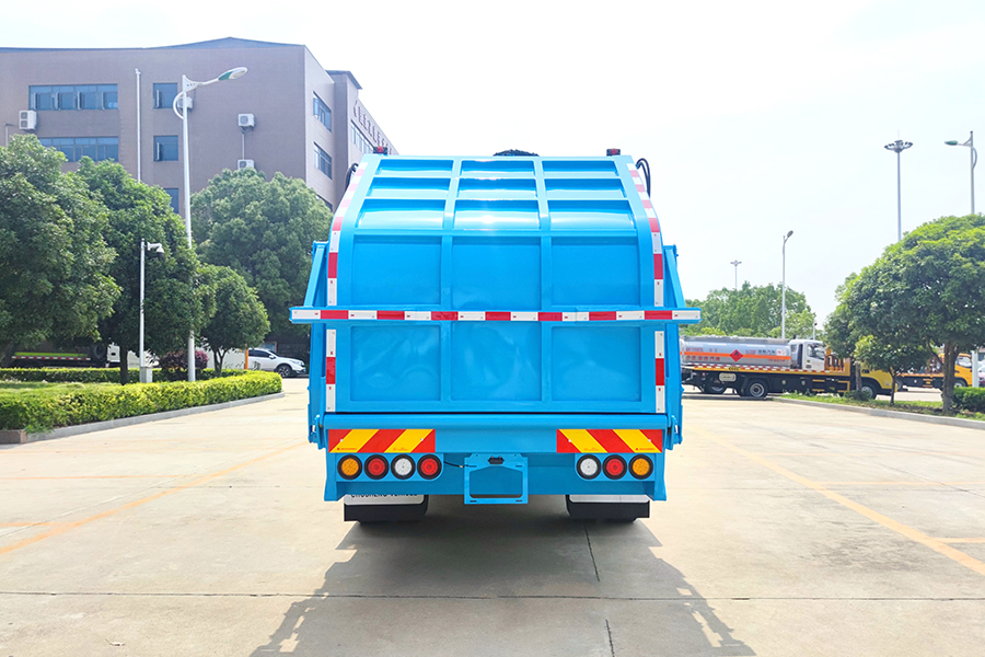 作業(yè)控制盒分別安裝在駕駛室內(nèi)和車尾,駕駛室內(nèi)的作業(yè)控制盒可控制推擠卸料和選擇操作模式(如自動或手動),車尾的作業(yè)控制盒則控制壓填機構(gòu)和翻桶機構(gòu)的作業(yè),使用操作十分方便。特別是在垃圾填埋場,作業(yè)人員無須下車即可完成卸料和污水排放。