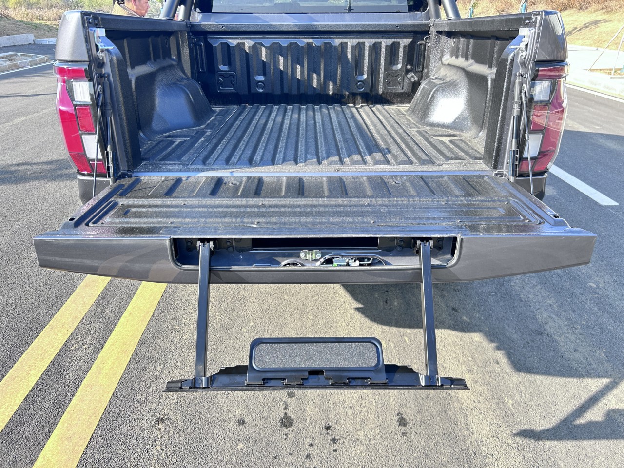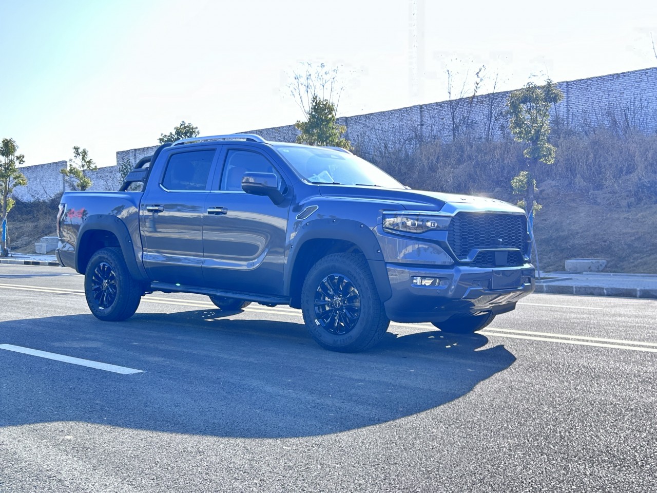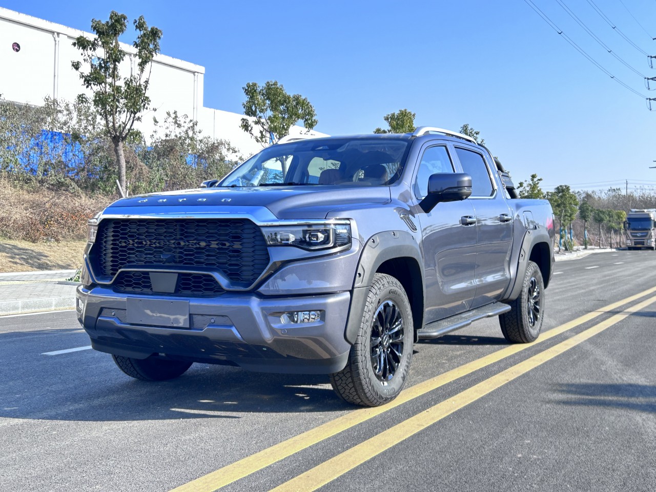★全尺寸硬派造型 ① 近2.1m超寬車(chē)身、1.65m貨箱、1.7m輪距 ② 整車(chē)方正硬朗設(shè)計(jì) ③ 帶燈語(yǔ)LED矩陣大燈 ④ 貫穿式帶燈語(yǔ)LED尾燈 ⑤ 3D雕刻尾門(mén)裝飾板 ⑥ 大尺寸越野輪眉+車(chē)頂行李架 ⑦ 265/70R18大尺寸全地形越野胎 ⑧ 一體式門(mén)把手+觸摸感應(yīng)解鎖 ⑨ 尾門(mén)液壓緩降 ⑩ 伸縮式蹬車(chē)踏步 ? 主動(dòng)進(jìn)氣格柵(行業(yè)首用) ? 多種個(gè)性化車(chē)身顏色