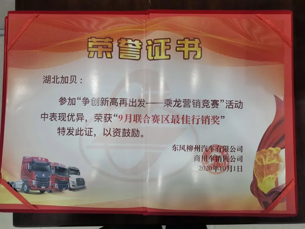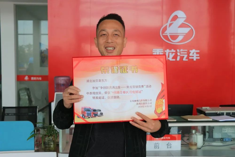 恭喜柳汽乘龍湖北加貝店和店內(nèi)的銷售團(tuán)隊經(jīng)過幾個月的不懈努力喜提柳汽榮譽證書!