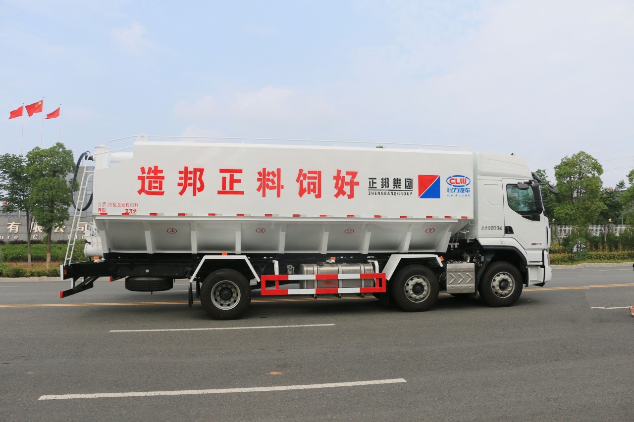 散裝飼料車全稱為散裝飼料運輸車。主要用于從飼料廠向畜牧場養(yǎng)禽場及飼料加工用戶或運輸散裝飼料成品飼料生產(chǎn)原糧,同時它也可用來運輸某些無腐蝕性粉粒狀原料,如制藥廠粉料和糧庫周轉(zhuǎn)。