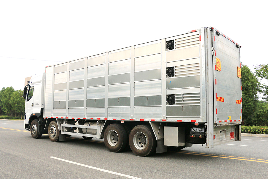 全鋁車身,三層,混合隔倉,可開合側(cè)窗,高轉(zhuǎn)速防水通風(fēng)排氣扇,機(jī)組,噴淋,監(jiān)控,垂直升降尾板,空氣過濾,裝豬數(shù)量達(dá)到1100頭/7公斤
