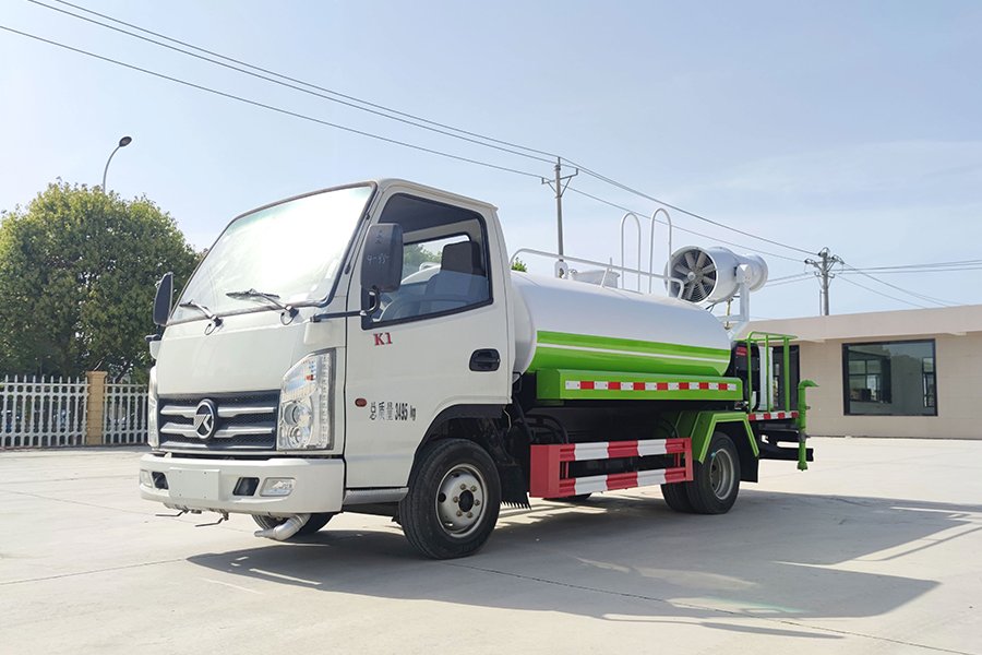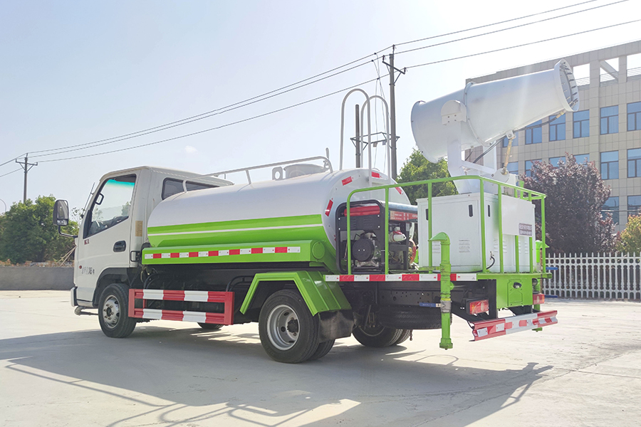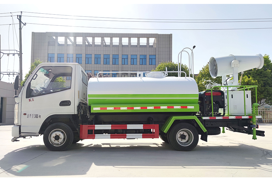 罐體采用標準Q235碳鋼制作,罐體自動焊,裝水3噸,配大功率專用灑水泵,可自吸自排,前沖后灑,側噴,主管道加粗,大通徑球閥,直通球閥式消防接口,帶后工作平臺,帶高炮。尾部大平臺,加裝30米噴霧機。環(huán)保、免征齊全。