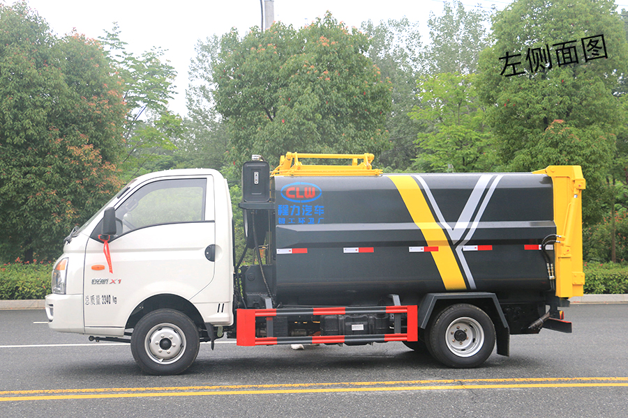 該車由密封式垃圾廂、液壓系統(tǒng)、操作系統(tǒng)組成,能配幾十個垃圾桶,實現一車與多個垃圾桶聯合作業(yè),廂體上的液壓升降裝置可將垃圾桶吊上、放下,上下升降,上下一次工作循環(huán)時間為50S,密封式廂體環(huán)保衛(wèi)生,可避免二次污染。