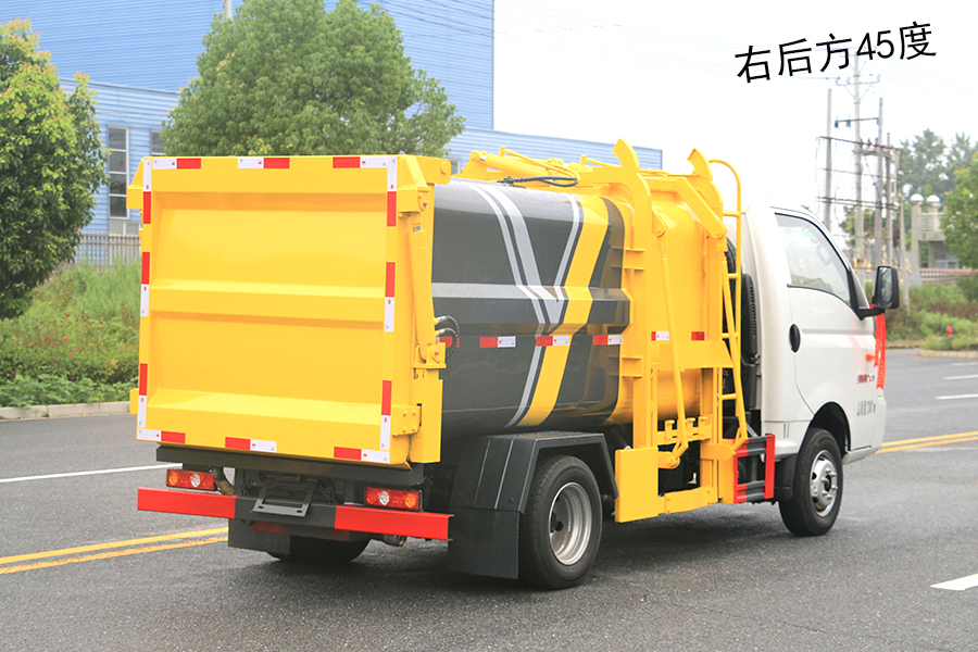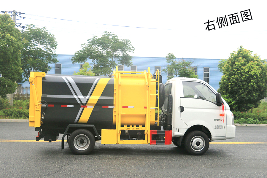 其自裝式的掛桶裝置可直接將路邊的垃圾桶掛在上面用提升機直接到在垃圾箱體里面省去了裝垃圾的麻煩。