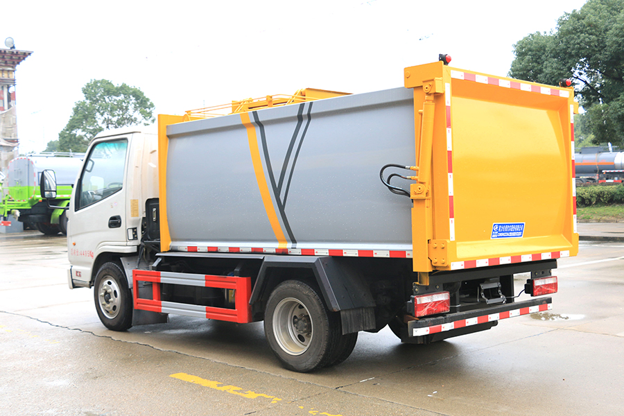 其自裝式的掛桶裝置可直接將路邊的垃圾桶掛在上面用提升機直接到在垃圾箱體里面省去了裝垃圾的麻煩。