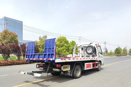 整車采用雙側聯(lián)動操作裝置,液壓郵箱全部加裝回油過濾器,一個4噸液壓卷盤(25米鋼絲繩),L型抱胎架1對,輪胎擋板2個,2個輔助小輪,4根綁帶。