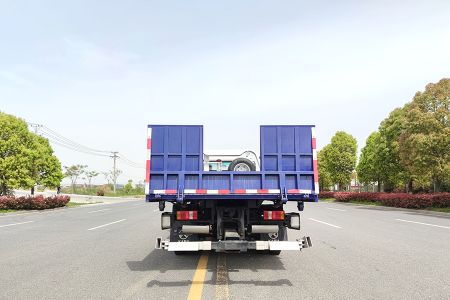上裝參考配置:可做折疊板,板長4.2米,翻板1米,伸縮板,板長4.2米,伸縮板1.2米,加長板可做到4.6米+1米,達到黃牌平板長度,后拖打開1.3m。