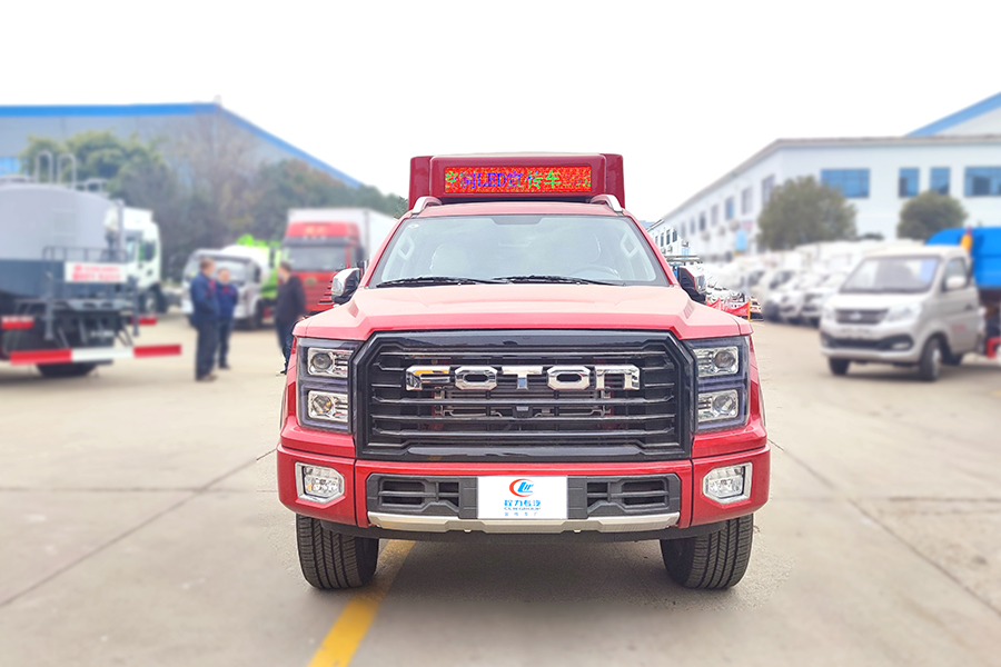 整車型號(hào)RLQ5037XXCB6,尺寸5340x1960x2360mm,全車4個(gè)面裝戶外P4全彩屏,左右兩側(cè)屏幕1280x800,尾屏960x800,前條屏960x320,外置式防水音柱,4G手機(jī)遠(yuǎn)程遙控播放音頻,鋰電池供電,可實(shí)現(xiàn)連續(xù)工作10小時(shí)??墒褂猛饨?20V市電供電/充電,箱體內(nèi)自動(dòng)溫控調(diào)節(jié)。