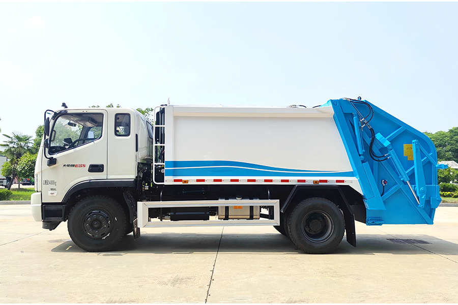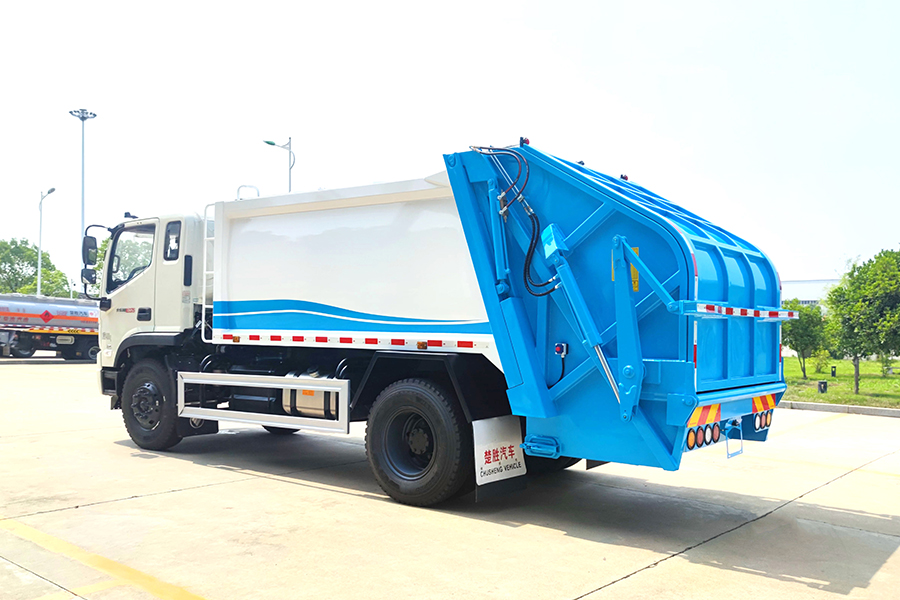 作業(yè)控制盒分別安裝在駕駛室內(nèi)和車尾,駕駛室內(nèi)的作業(yè)控制盒可控制推擠卸料和選擇操作模式(如自動或手動),車尾的作業(yè)控制盒則控制壓填機構(gòu)和翻桶機構(gòu)的作業(yè),使用操作十分方便。特別是在垃圾填埋場,作業(yè)人員無須下車即可完成卸料和污水排放。